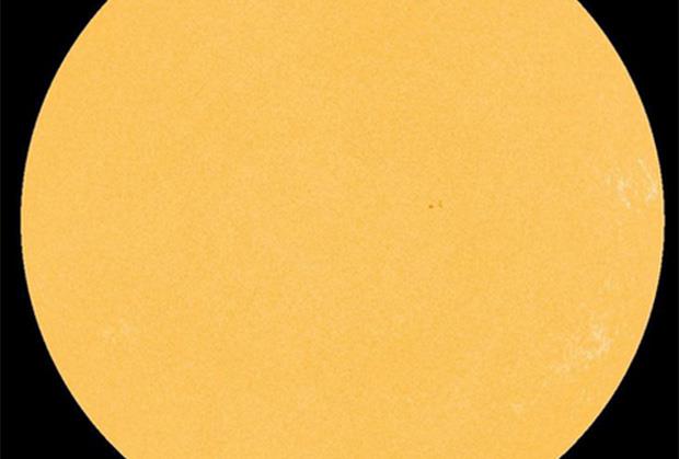 Na fotografiji snimljenoj 18. jula vidi se jedna jedina tačkica koja više izgleda kao prljavština na objektivu nego na poštenu sunčcevu peg.
