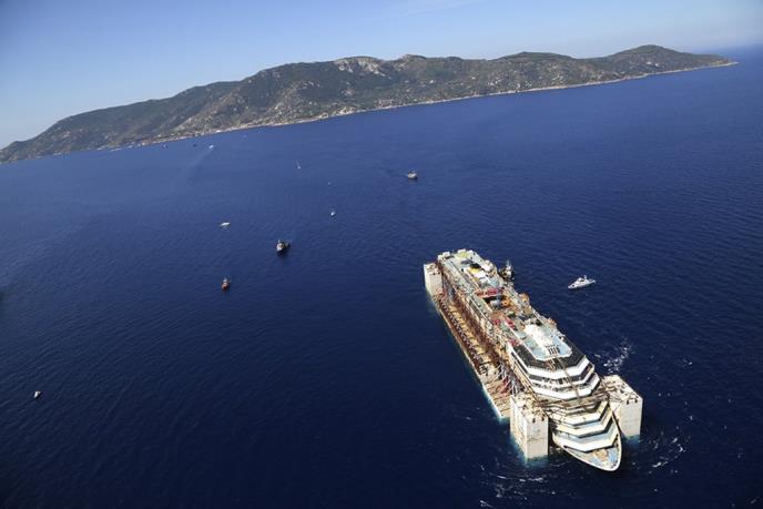 Zarđala olupina broda teškog 114.500 tona i dugog 290 metara, ležala je na privremenoj podvodnoj platformi koja ju je podupirala od septembra prošle godine, kada je kruzer uspravljen.