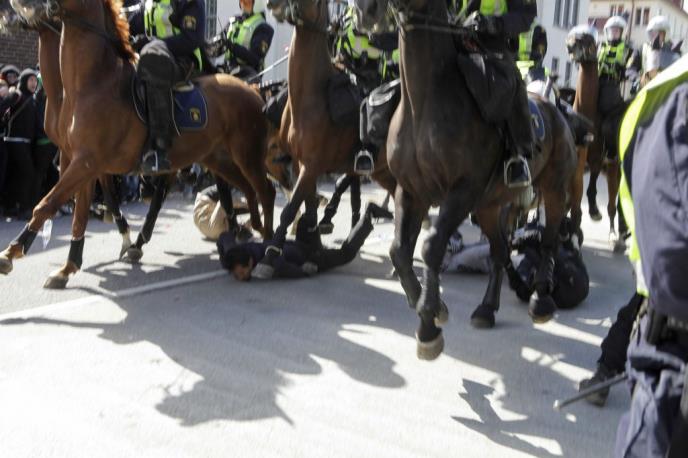 ŠVEDSKA - Najmanje 10 osoba je povređeno nakon što je policija na konjima ujahala među antinacističke demonstrante u Malmeu u Švedskoj.