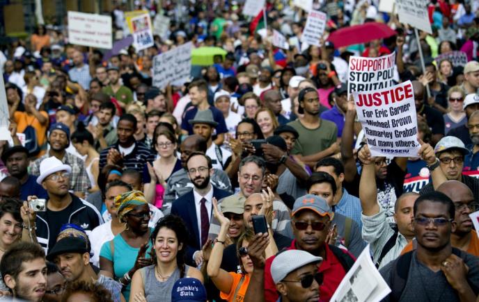 Neki od demonstranata u Njujorku nosili su transparente sa natpisima "Životi crnaca su važni", tražeći pravdu u slučajevima Garner i Braun, dok je veliki broj policajaca mirno posmatrao okupljene.
