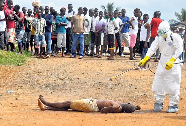 U Monroviji, piše Forin polisi, sve vesti su o eboli. Na naslovnici jednog lokalnog lista nacrtana je slika čudnog crvolikog bića s lobanjom umesto glave, strelom u jednoj i nožem u drugoj ruci. Ispod crteža piše: „Napravljen sam po liku santane da uništim život i sve na zemlji“.
