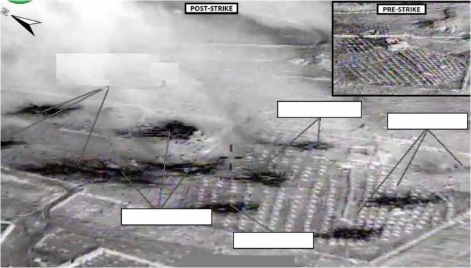 Američka vojska u napadima koristi krstareće rakete tipa "tomahavk", bombardere B1, lovce F16, F18 i F22Zračni napadi provedeni su uz korištenje velike količine ratnih sredstava, od krstarećih projektila tipa Tomahawk, bombardera B1, lovaca F16, F18 i F22, koji je po prvi put upotrebljen u ratnim uslovima, kao i brojnih bespilotnih letelica.