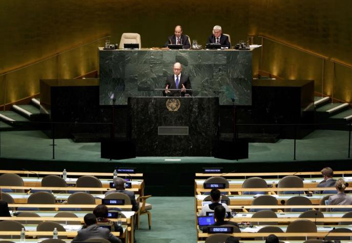 Obraćajući se prvog dana plenarne diskusije u Generalnoj skupštini UN, Jacenjuk je deset minuta sipao optužbe na račun Rusije i završio direktnim obraćanjem Putinu: "Gospodine Putine, vi možete da pobedite u borbi protiv vojske, ali nikada nećete dobiti bitku sa ujedinjenim ukrajinskim narodom".