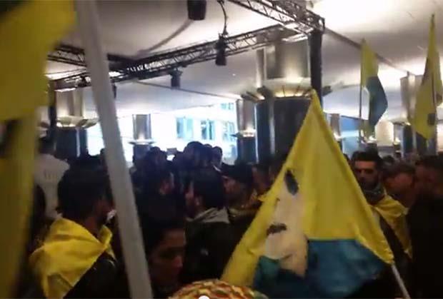 Oko 50 demonstranata probilo je obezbeđenje zgrade EP i zauzelo multimedijalnu scenu "Voks boks" noseći zastave među kojima su neke sa slikom Abdulaha Odžalana, lidera Radničke partije Kurdistana (PKK) koji se nalazi u zatvoru, prenosi Raša tudej.
