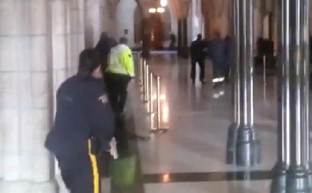Totalna panika zavladala je u hodnicima velepnog zdanja u Otawi. Nakon saznanja da se napadač, koji je u prepodnevnim satima u blizini zgrade parlamenta ranio jednoga vojnika, utrčao je u parlament, za njim se u potragu dala kanadska policija.