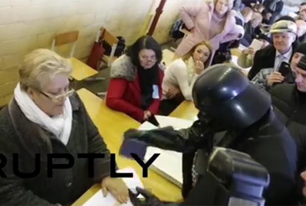 Dart je došao na glasačko mesto u Kijevu u svom crnom "Dartmobilu" i odbio je da skine karakterističnu crnu masku kako bi pokazao pravi "zemaljski" identitet nervoznoj službenici biračke komisije, preneo je AFP. Onda joj je i oteo pasoš iz ruke, pa mu nije omogućeno da glasa.