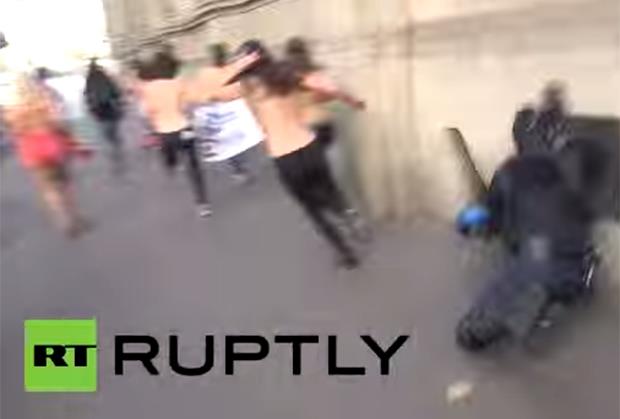Gologrude aktivistice FEMEN-a okupile su se u središtu Pariza kako bi svojim otkrivenim tijelima prosvjedovale protiv uhićenje jedne njihove pripadnice. Naposlijetku je više od 20 njih uhićeno.