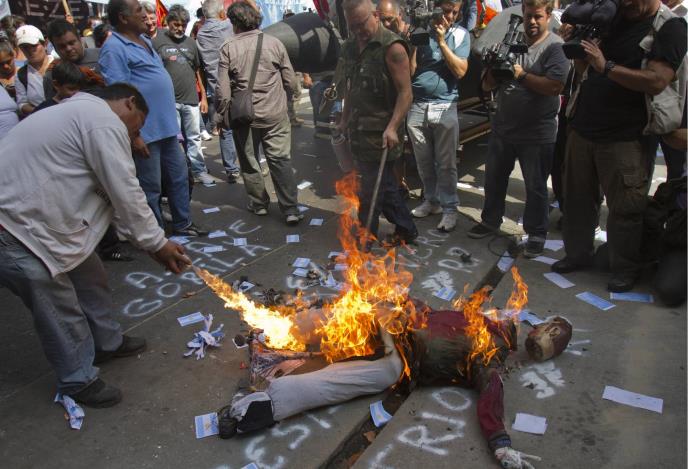 BUENOS AERES - Na 30. godišnjicu Foklandskog rata u prestonici Argentine izbili su masovni nemiri u blizini britanske ambasade koji su kulminirali paljenjem lutke princa Vilijama i obračunom hiljada demonstranata sa policijom! Oni su gađali zgradu ambasade kamenjem i molotovljevim koktelima, posle čega su snage reda upotrebile vodene topove.