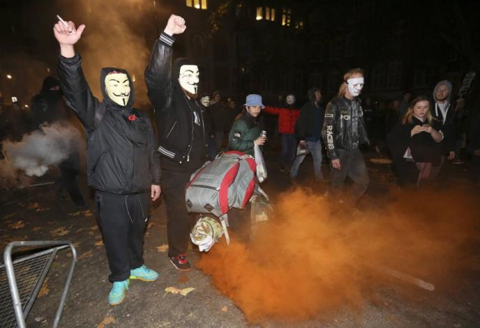 LONDON - Učesnici protesta "Milion maski", u organizaciji aktivističkog pokreta Anonimusi, održanog u više svetskih gradova, sukobili su se s policijom u centru Londona i ispred Bakingemske palate.