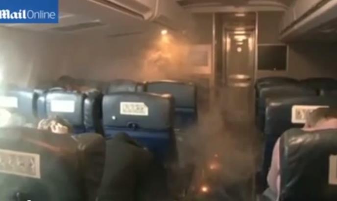 Ovako izgleda vežba za slučaj rušenja aviona. Simulirana je panika, dim u avionu, dok putnici vežbaju i spuštanje niz tobogan za evakuaciju.