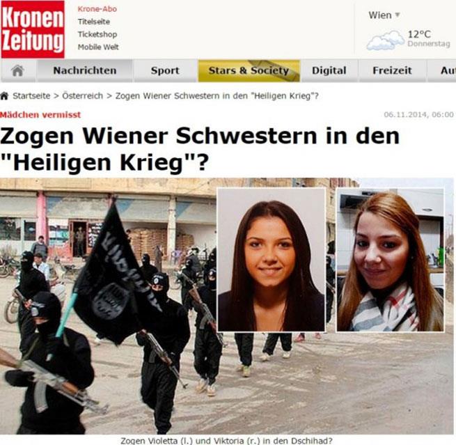 BEČ - Rođene sestre iz Beča , Turkinje Viktorija (16) i Violeta (17) u subotu uveče izašle su iz kuće da kupe cigarete i nestale bez traga ! Sa sobom su ponele pasoše , pa se sumnja da su se pridružile džihadistima .