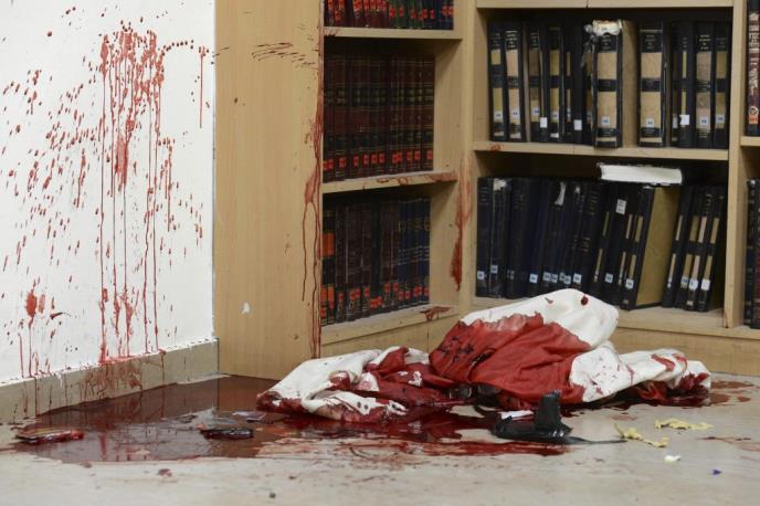 Napad se dogodio u sinagogi u zapadnom Jerusalimu u kvartu Har Nof. Policijski portparol Luba Samri rekla je da su napadači ušli u sinagogu naoružani noževima, sekirama i pištoljima i napali vernike. U razmeni vatre sa policajcima napadači su ubijeni. Jedan policajac je u razmeni vatre dobio povrede opasne po život.