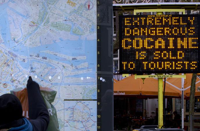 Na glavnoj železničkoj stanici u holandskoj prestonici, kao i na još nekim mestima oko centra Amsterdama, postavljene su velike svetleće reklame s upozorenjem na engleskom jeziku "Veoma opasan kokain se prodaje turistima".