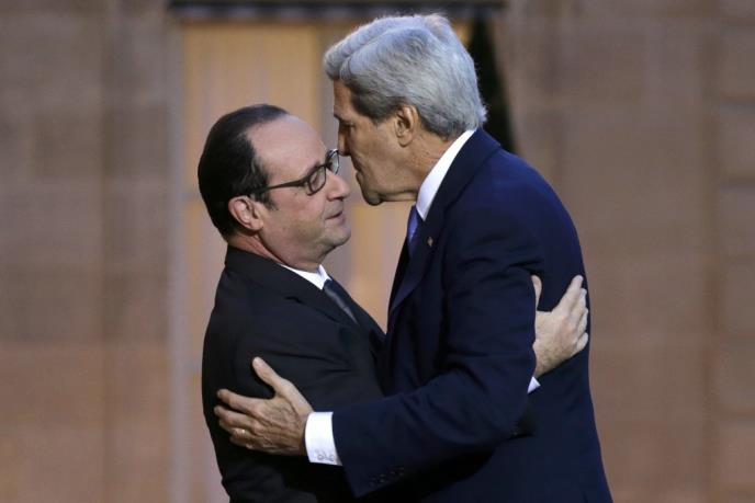 Oland je rekao da SAD i Francuska moraju pronaći "odgovor zajedno" na ekstremističke napade, prenela je agencija AFP. Keri je, zagrlivši Olanda, rekao da SAD "dele bol" sa Francuskom posle prošlonedeljnih napada.