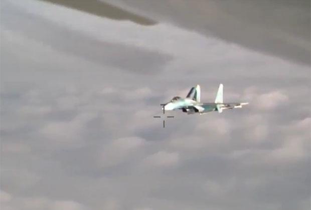 Na snimku se lepo vidi naoružani ruski lovac kako se približava izviđačkom avionu s bočne strane, zatim usporava, a onda juri dalje. Uobičajena je praksa da ruske snage šalju jednog borca da identifikuje i isprati izviđačke avione NATO.