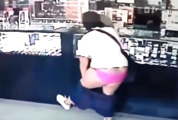 Nemaskirana žena uletela je u juvelirnicu s ogromnim kamenom u rukama, ali nije uspela da njime razbije staklo na vitrini s izloženim nakitom. Kao da to nije bilo dovoljno, u jednom trenutku joj je šorc spao gotovo do gležnjeva, pa su joj sevnule pozamašne ružičaste gaće, ali i takođe pozamašna zadnjica.