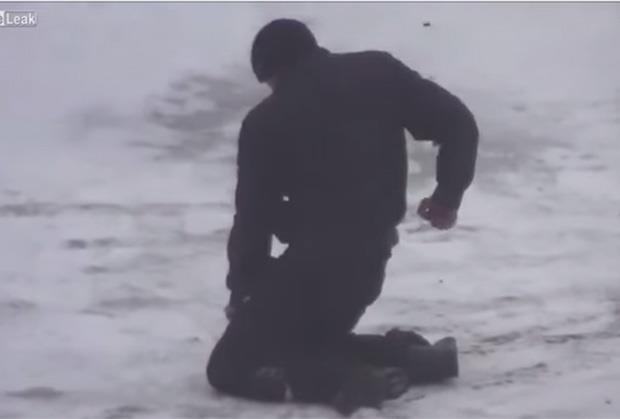 Lajv lik (LiveLeak) je objavio snimak neimenovanog čoveka, za kojeg je navedeno samo da je Ukrajinac, koji pesnicama rešava problem s nekim velikim neprijateljem.