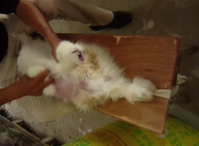 U Kini, gde se proizvodi 90 odsto angore, snimljena je uzgajivačnica u kojima radnici čupaju dlaku živim zečevima koji trpe stravične bolove
