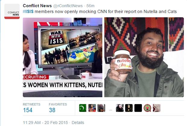 Ovo "genijalno" otkriće CNN postalo je predmet opšteg ismevanja - prvi su džihadisti ISIL požurili da poziraju s nutelom i mačićima.