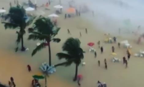 Kupači na plaži ostali su šokirani kada je pijavica stiogla do obale. Počela je da nosi stvari, suncobrane, a na snimku koji je snimljen sa obližnjeg balkona može se videti kako ljudi beže vrišteći glavom bez obzira