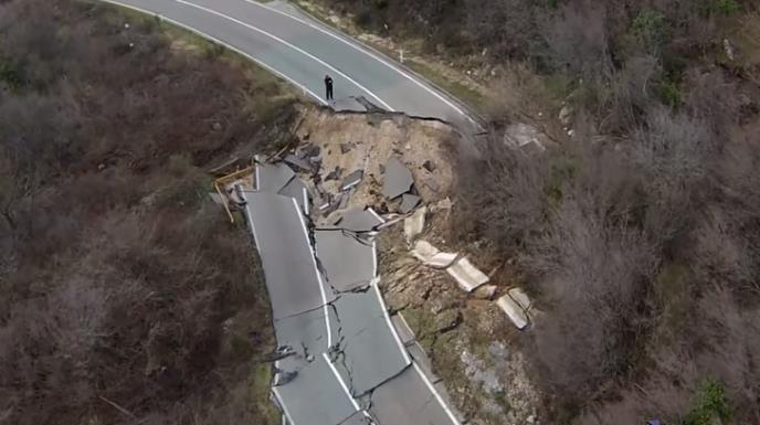 Deo puta nošen velikim klizištem sišao je za protekla tri dana 12 metara, dok je deo kolovoza, koji je prethodnih dana napukao, sada razdrobljen rupama koje su duboke i po tri metra