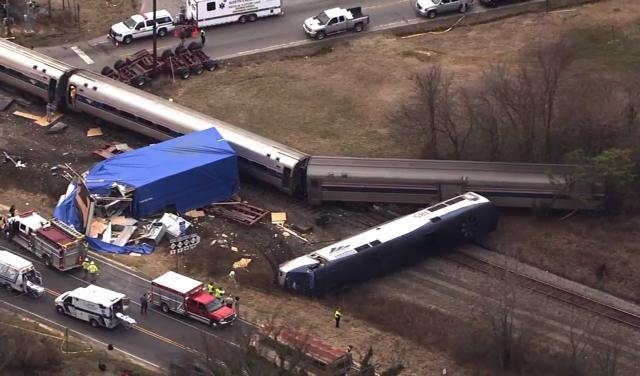 Posle udara lokomotiva voza je iskočila iz šina i prevrnula se, prenela je agencija AP. Očevici navode da je vozač kamiona iskočio iz vozila pre sudara.
