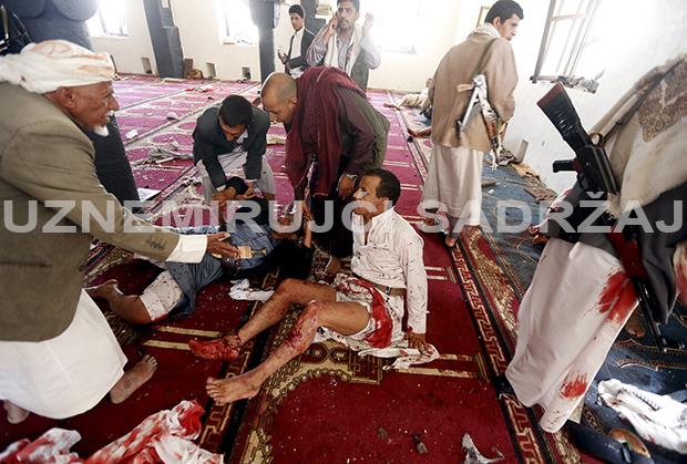 Bombaši-samoubice, pripadnici militantnog pokreta Huti, uleteli su u prepunu džamiju tokom molitve petkom, koji je muslimanima sveti dan