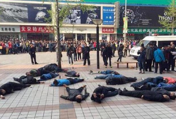 Pekinški policajci u patroli su juče ujutro, u pešačkoj zoni kvarta Vangfuđing, pronašli više od 30 ljudi kako leže na pločniku, javlja televizijska mreža Ej-Bi-Si (ABC). Kraj njihovih tela pronađene su boce sa pesticidom, i oni su hitno prebačeni u obližnju bolnicu. Prema navodima policije, niko od njih nije ozbiljnije ozleđen.