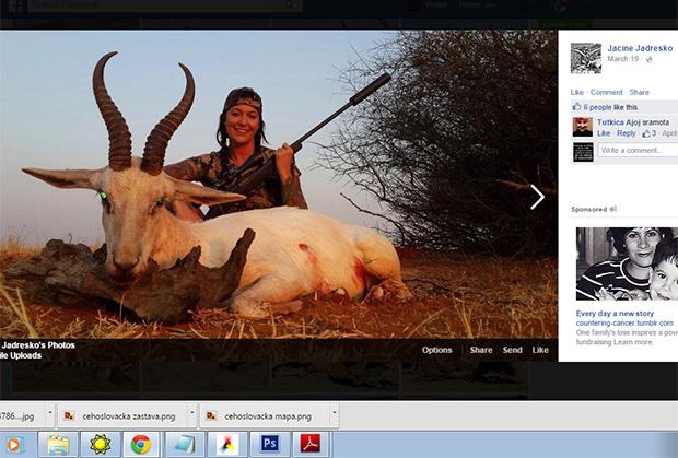 ZAGREB - Splićanka Jasin Jadreško jedna je od najomraženijih osoba na Fejsbuku od čijih se fotografija ljudima prevrće stomak: profil joj je pun fotografija na kojima trijumfuje nad ubijenim životinjama i pozira zamazana krvlju s njihovim srcima, džigericama i drugim organima.