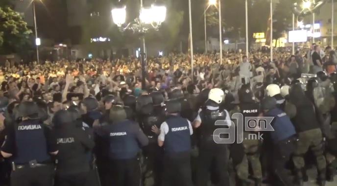 Odmah posle objavljivanja sadržaja prisluškivanog razgovora nekolicine zvaničnika vlade, pristalice opozicije su se okupile u centru Skoplja, a tenzije su rasle kako je rastao i broj demonstranata.