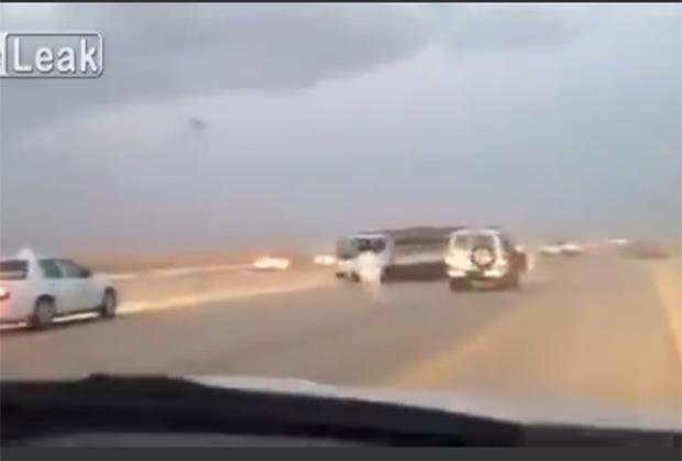 RIJAD - Trčao je putem između automibila i strastveno napao kamion koji je dolazio iz suprotnog pravca.