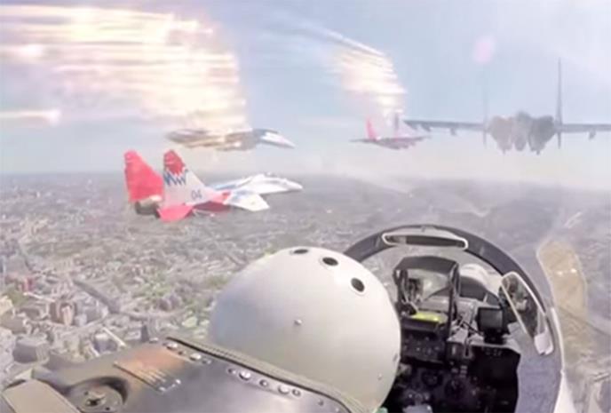 Na nebu iznad Moskve pojavili su se i juršni avioni, "migovi" koji izbacuju infracrvene mamce, kao i najnoviji lovci-bombarderi "Su-35", kao i čuveni "Striži"