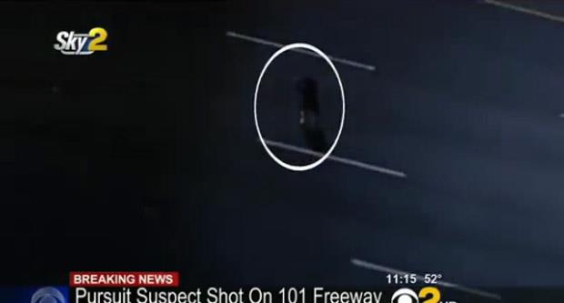 U jednom trenutku, on je prešao nekoliko saobraćajnih traka izašao iz automobila nakon čega je potrčao nazad i dok se kretao, okrenut prema policajcima ispružio je obe ruke i potom ih sastavio.