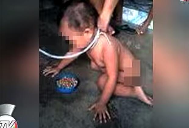 MANILA - Jedna žena iz Manile, nažalost majka, objavila je na svom Fejsbuk profilu fotografije svog jednogodišnjeg sinčića kog drži na uzici terajući ga da se ponaša kao pas