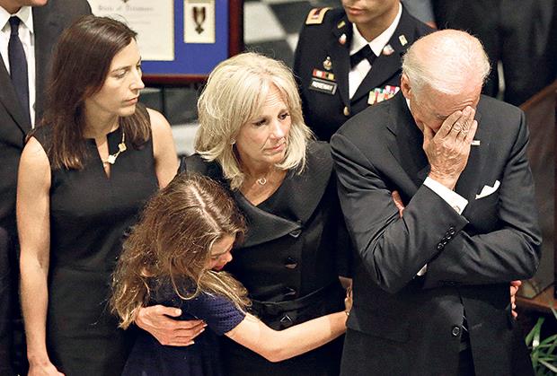Držeći se za snaju i unuke, drugi čovek SAD uz suze je do parlamenta Delavera pratio kovčeg s telom svog najstarijeg sina, koji je prošle subote preminuo od posledica tumora na mozgu, a stotine ljudi, uglavnom rođaci, prijatelji i saradnici, izjavile su mu saučešće.