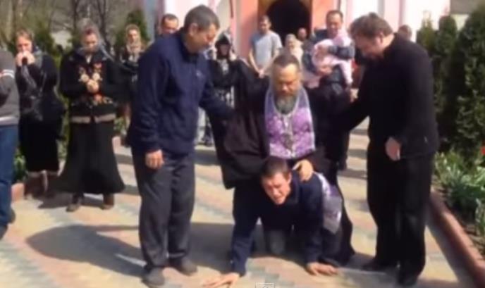 Video snimak ovog čudnog obreda pokazuje Oca Valerija, iz crkve Svetog Arhangela Mihajla u samoproglašenoj državi Transnistriji, kod Moldavije, kako povlači uši ovog jadnog čoveka dok on plače i pada.