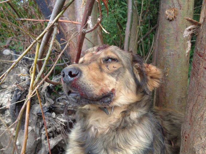 Volonteri Udruženja Spas psa su odvezli kos veterinara. Smrskana je lobanja i sinusni kanali. Policija traga za počiniocem.