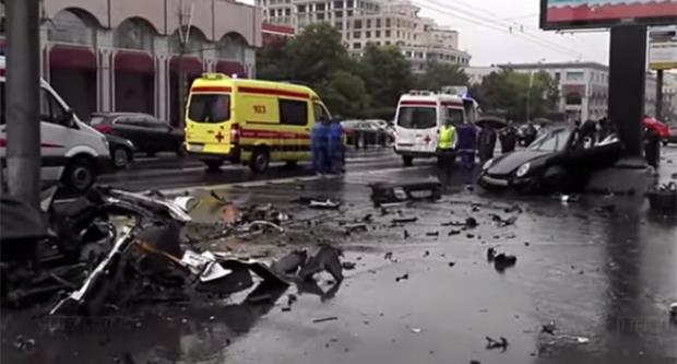 Nesreća u kojoj su poginula dvojica mladića dogodila se rano jutros oko 7.20 sati kada je automobile marke Porše 911 Turbo S po klizavom putu pri brzini od 150 kilometara na čas zakucao u metalnu banderu u Bolšaja ulici u strogom centru Moskve i prepolovio ga na dva dela.
