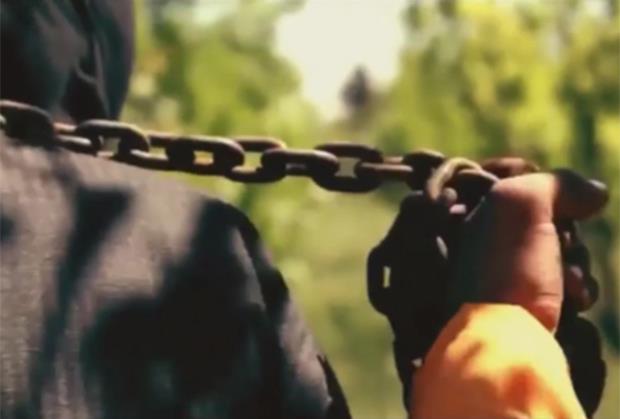 Osvetnici su obukli narandžaste kombinezone u koje ISIL oblači svoje žrtve, a krvnike su obukli u crno i vezali lancima, kao što ovi sprovode devojčice i devojke na pijacu roblja
