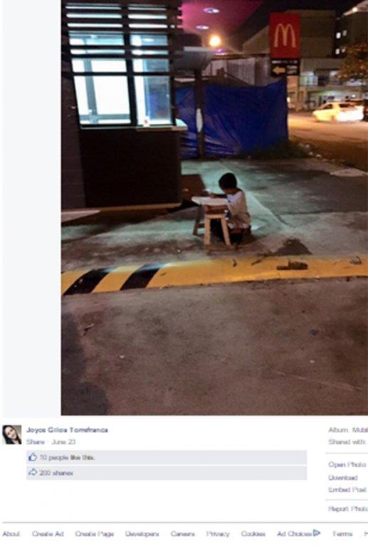 "Taj dečak nema ništa, a tako vredno uči", napisala je potresena Džojs na Fejsbuku.