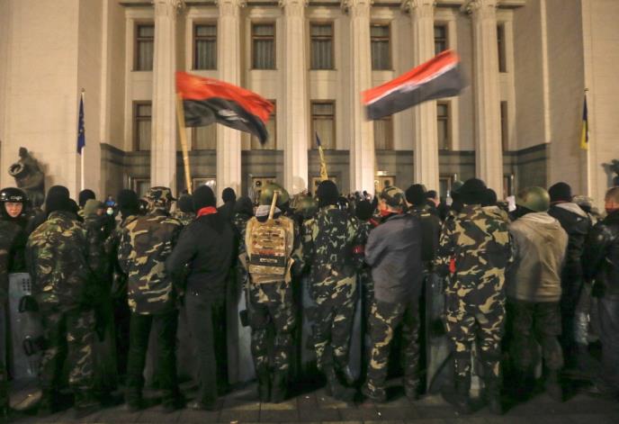 Portparol Desnog sektora Artjom Skoropadskij je rekao da će oni ući u Kijev pod punom ratnom opremom ukoliko se tenzije nastave. Skoropadskij rekao da Desni sektor već formira kontrolne punktove, uključujući i glavni autoput koji vodi ka Kijevu.