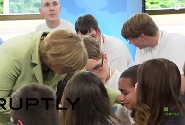 U emisiji iz modernog školskog centra u Rostoku, odakle se direktno prenosio razgovor Merkelove sa mladima do 17 godina o politici Evropske unije prema izbeglicama, kancelarka se obratila 14-godišnjoj Rim Sahvil, koja je prethodno ispričala da njenoj porodici preti deportacija jer njen otac ne može da dobije nemačke dokumente.