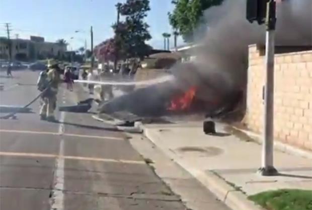 RIVERSAJD - Mali avion sa jednim motorom "bičkraft" sručio se i zapalio u dvorištu jedne kuće u južnoj Kaliforniji i tom prilikom je poginuo pilot.