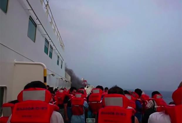Japanska obalska straža je saopštila da je primećeno kako plamen izbija iz jednog kamiona koji se nalazio na trajektu, te da trenutno radi na gašenju požara, sa 15 patrolnih brodova i pet aviona, dok su se operaciji pridružila i četiri broda koja su plovila u blizini.