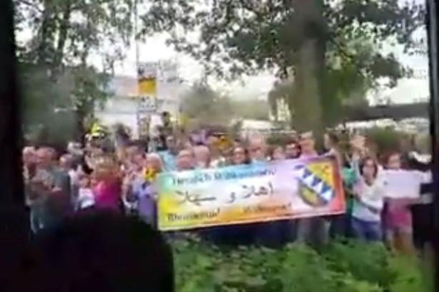 Držeći banere i transparente u rukama na kojima je pisalo "Dobrodošli" i to na engleskom, nemačkom, francuskom i arapskom, ljudi su aplaudirali i mahali