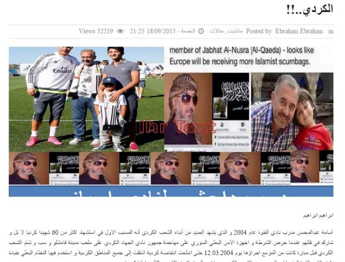 Sirijska partija je objavila fotografiju s Fejsbuk profila Abdula Mohsena koji više nije dostupan, a na kojem se on identifikuje kao pripadnik Nusra Fronta i tvrdi da se on protiv Kurda borio u blizini Amudeha, Serekanije i Afrina.