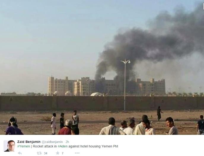 Stanovnici drugog po veličini grada u Jemenu čuli su nekoliko eksplozija, a slike napada su objavljene na tviteru i na njima se može videti gust dim kako se vije iz pogođenog hotela. Za sada nema zvanične potvrde napada na hotel u Adenu u kome su bili smešteni visoki jemenski zvaničnici, po povratku u zemlju.