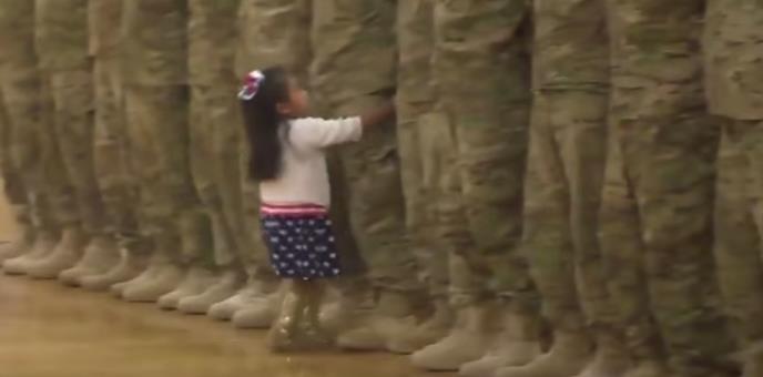 Dok je trajala svečanost u čast vojnika koji su se vratili sa višemesečnog odsustva, jedna devojčica nije mogla da čeka da pozdravi svog heroja