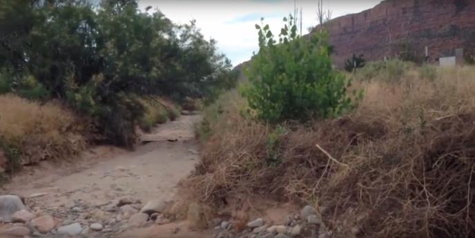 Poplava je ovaj sušni deo Jute, ubrzo pretvorila u rečnu dolinu, a voda je presekla i lokalni put pa tako blokirala saobraćaj.