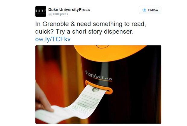 Umesto da "čačkaju" po mobilnim telefonima, stanovnici ovog francuskog grada sada mogu na novom, neobičnom aparatu da izaberu format priče u zavisnosti od dužine čekanja (trominutna, petominutna...) i klikom na dugme dobijaju odštampanu kratku priču iz popularne književnosti.